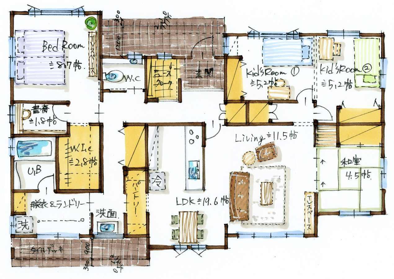 当社アイワホームはお客様のお話を聞いて、1邸1邸ご希望に合わせて間取りを作成する完全注文住宅です。<aiwaの間取り>では、これまでに作ってきた沢山の間取りを少しでもご紹介出来れば・・・と思っております!😃