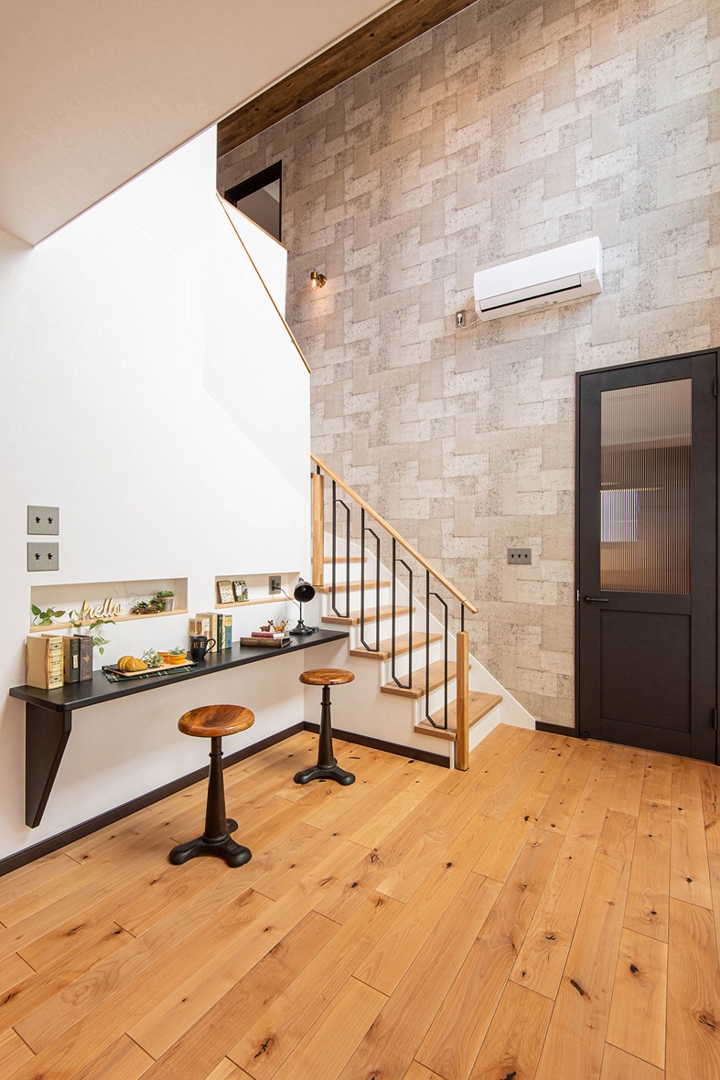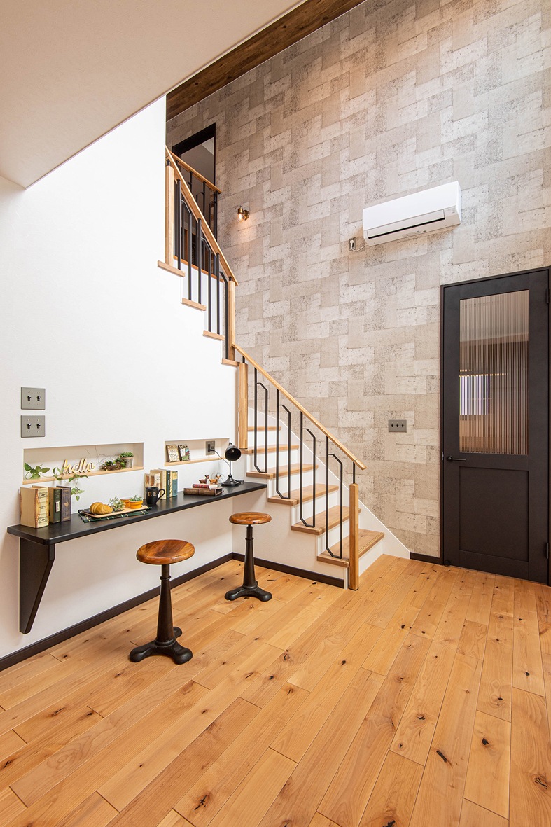 1Fと2Fをつなぐ場所にもなりますね。大きな窓からの光が1Fにも届きます。こちらを腰壁にすると・・・