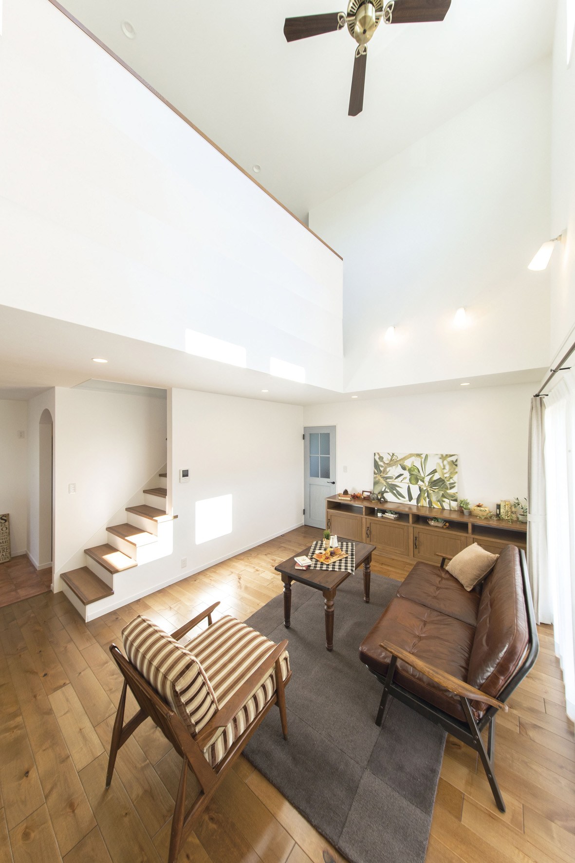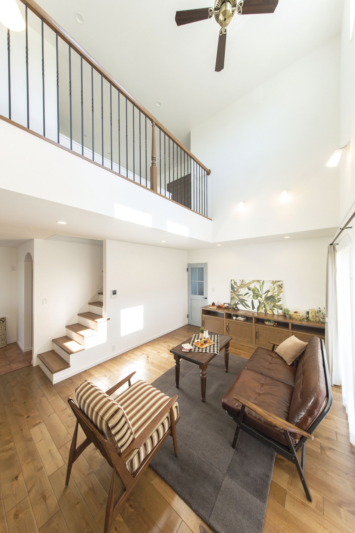奥行きがあるので吹抜け部分がさらに広く感じられます。