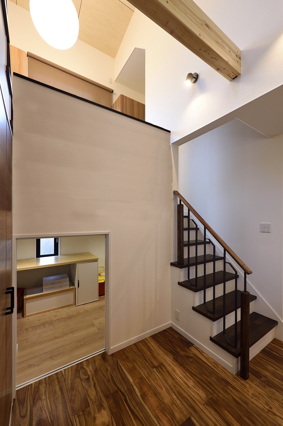 まずは平家の勾配天井を利用した階段5段目のスキップフロアー。