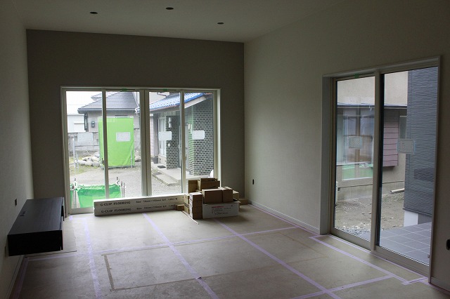 リビングには天気が良ければ大きな窓から光が沢山入って、タイルデッキにも出ることが出来ます。