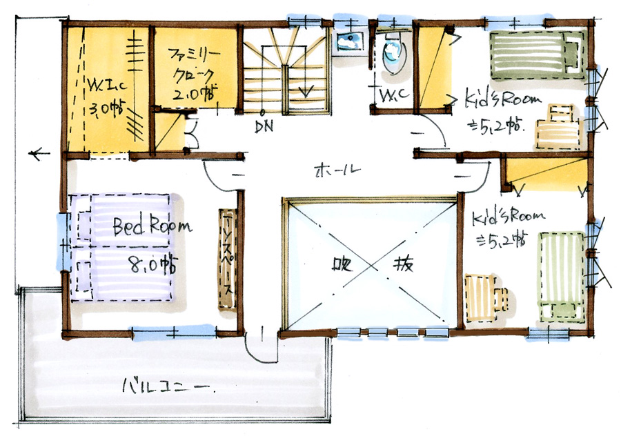 こんにちは!設計のカトウです。今回は2階建ての間取りをご紹介します😃