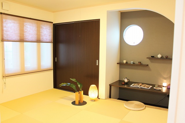 丸窓と飾り棚で、和の空間にも合うようにデザインしました。