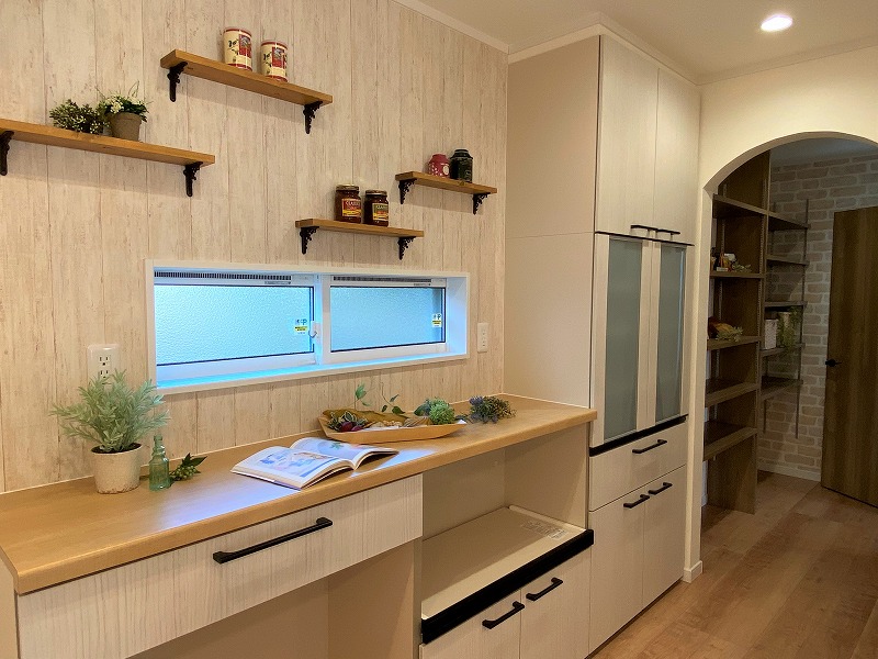 今回はキッチン後ろの見せる収納棚をご紹介したいと思います♬見せる収納と隠す収納を上手につかって『オシャレ』と『スッキリ』の両方を実現◎