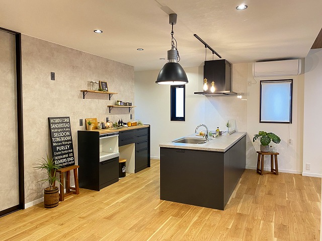 キッチンは人気のアイランド型です👇吊戸棚をなくすことですっきり見えますね😄