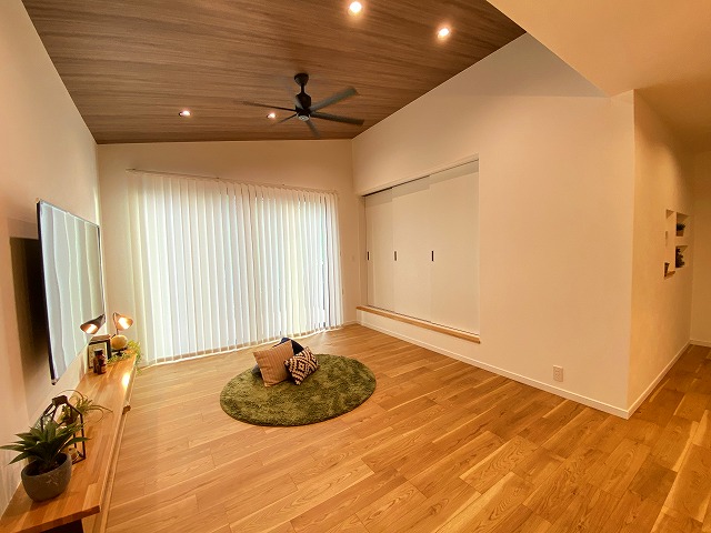 👇勾配天井のリビングです!白い扉を開けると、、