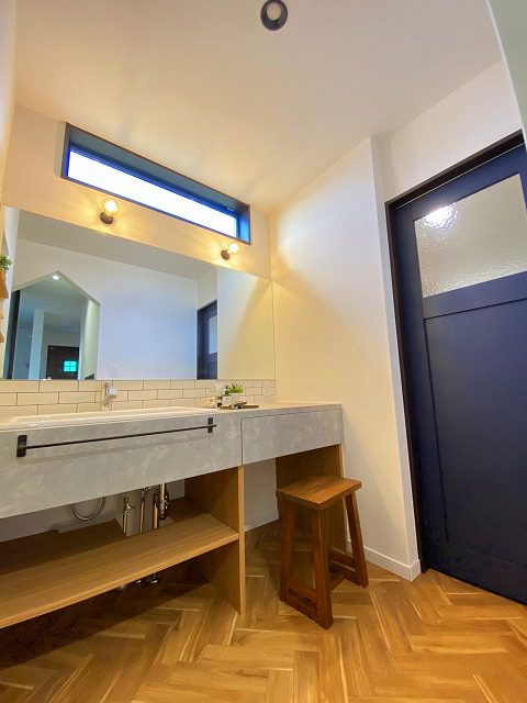 👇こちらはAIWAHOMEオリジナルの造作洗面化粧台です。間取りに合わせてぴったりに作成可能です✨