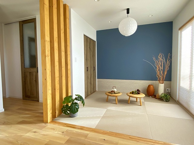 フチなしの畳はスッキリ見えて空間が広く感じますね😄