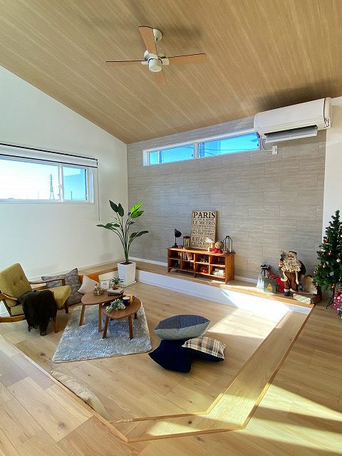 1段床を下げたダウンフロアが特徴的なリビングです。