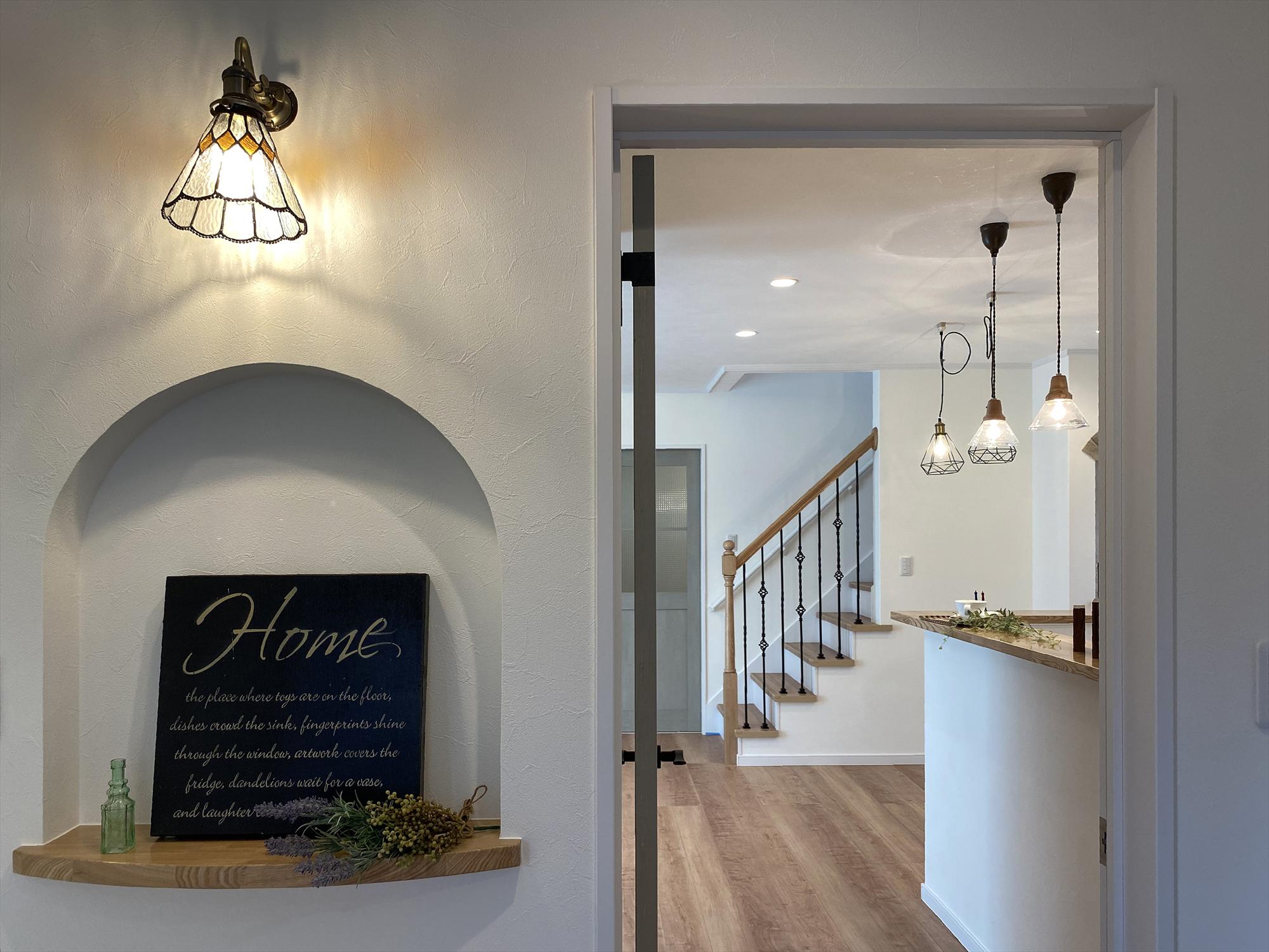 こちらは玄関ニッチです。下の集成材も緩やかにカーブしていて、より可愛さが増していますね!