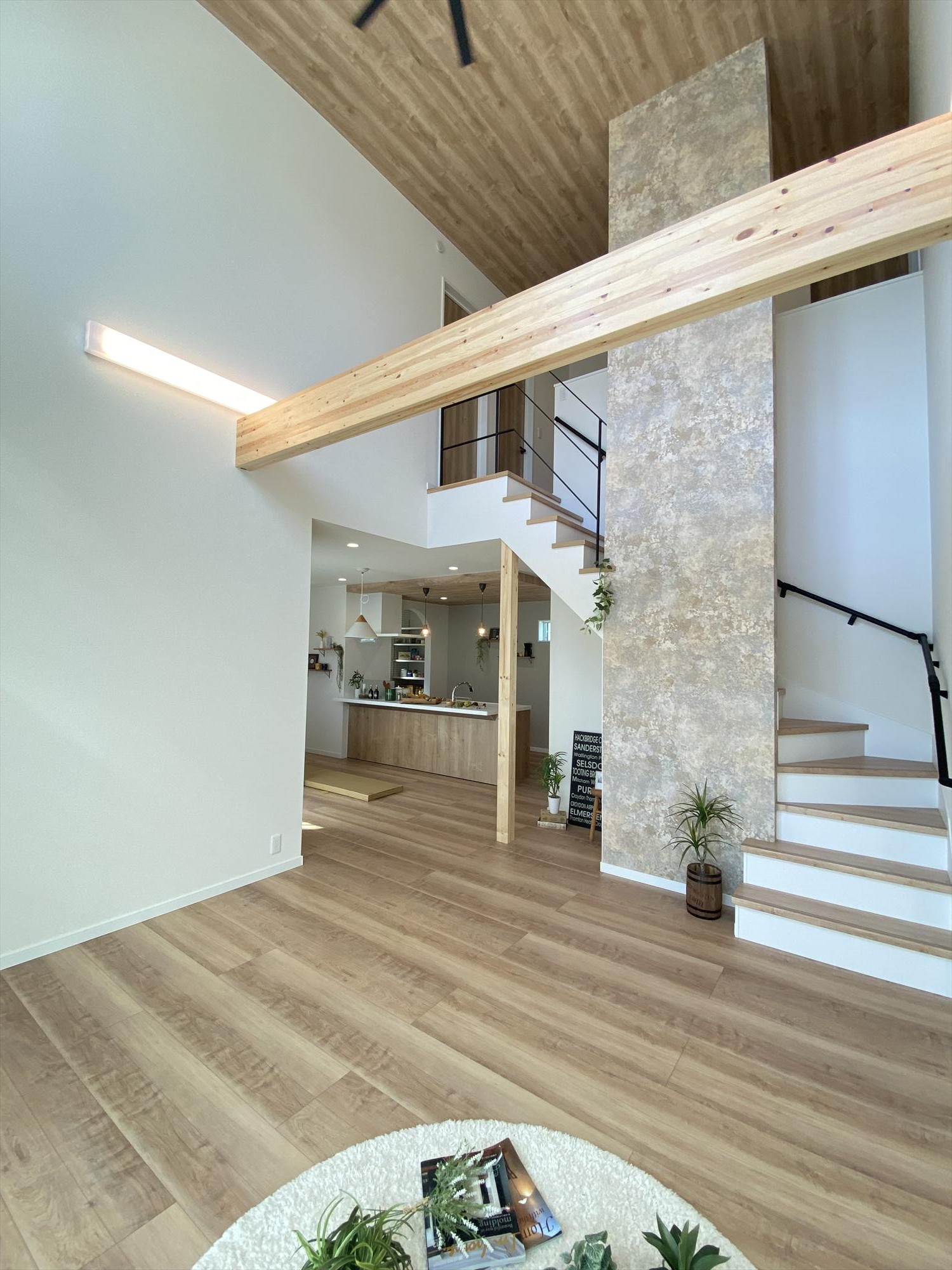 こちらのお家は、白を基調とした空間に柔らかいベージュの木目と落ち着いた色味の石目調クロスで、落ち着いたカラーでシンプルに仕上げています。