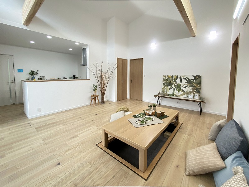 リビングに堀ごたつがあるナチュラルテイストのお家になっています☕