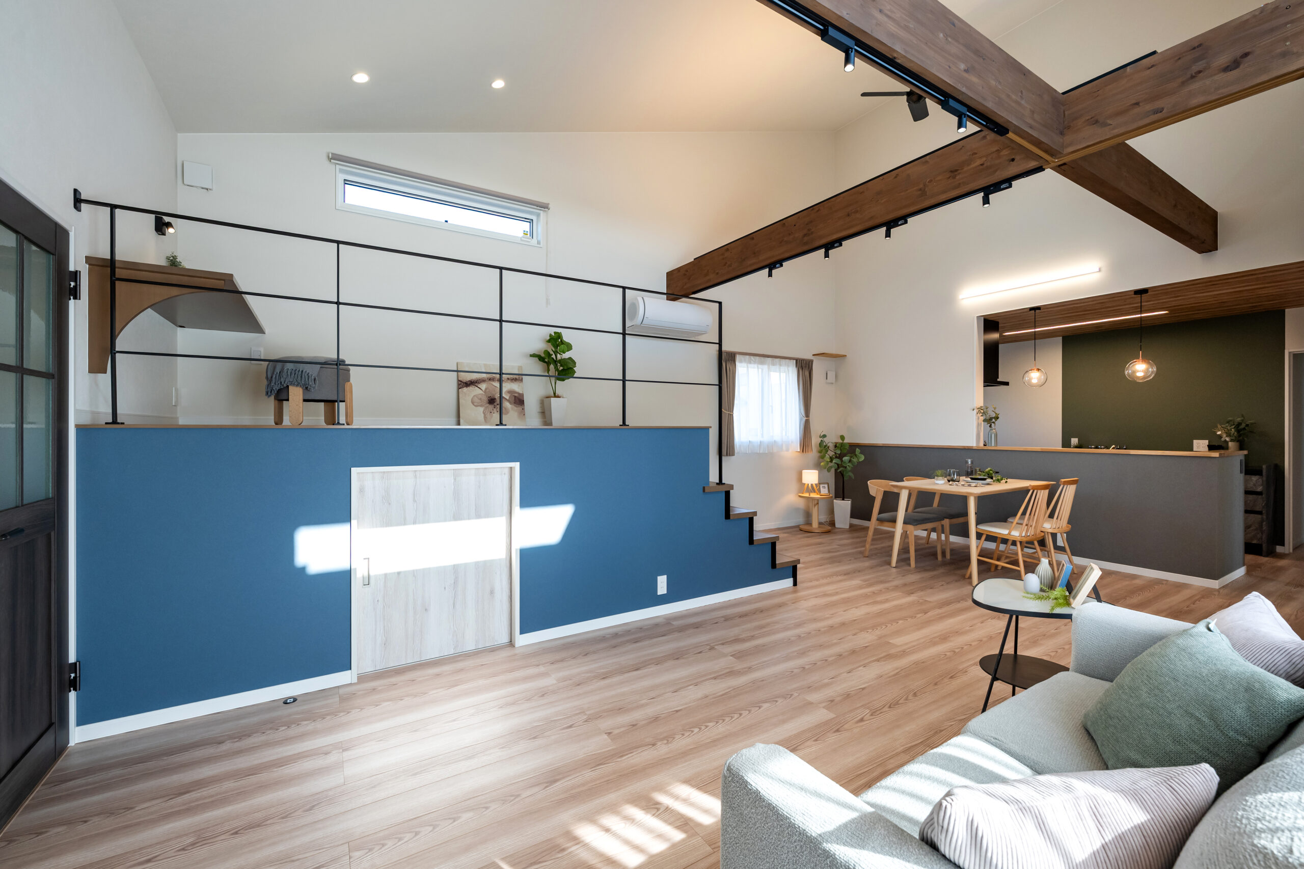 スキップフロアもアイアン手すりにすることでよりリビングと繋がる空間に!