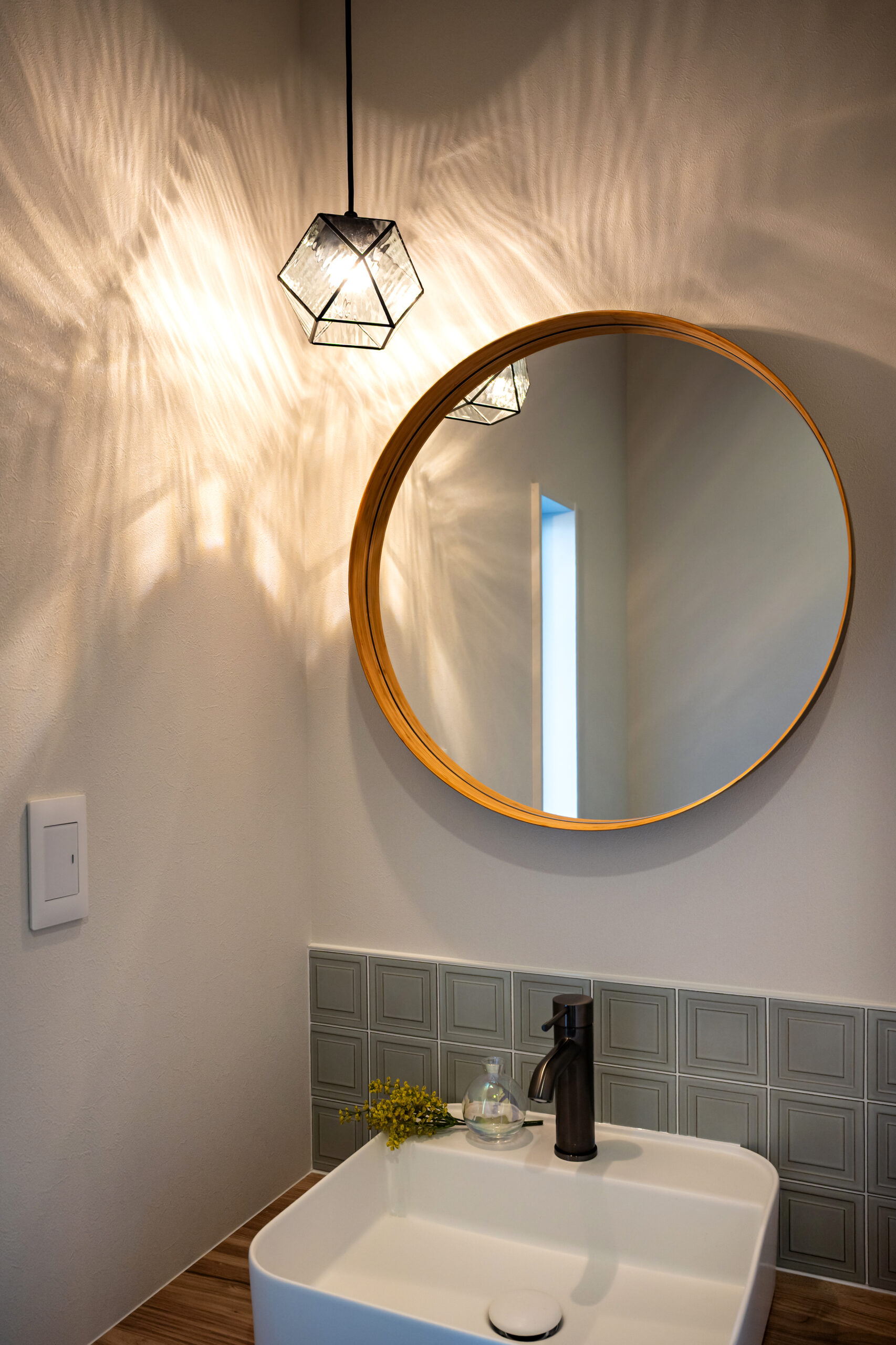 ワッフル面状のタイルはレトロでナチュラルな雰囲気に!