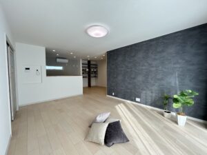 シンプルな空間に一面だけアクセントを入れることで、視線がその面に集まり、ぼやっとした印象がなくなります◎