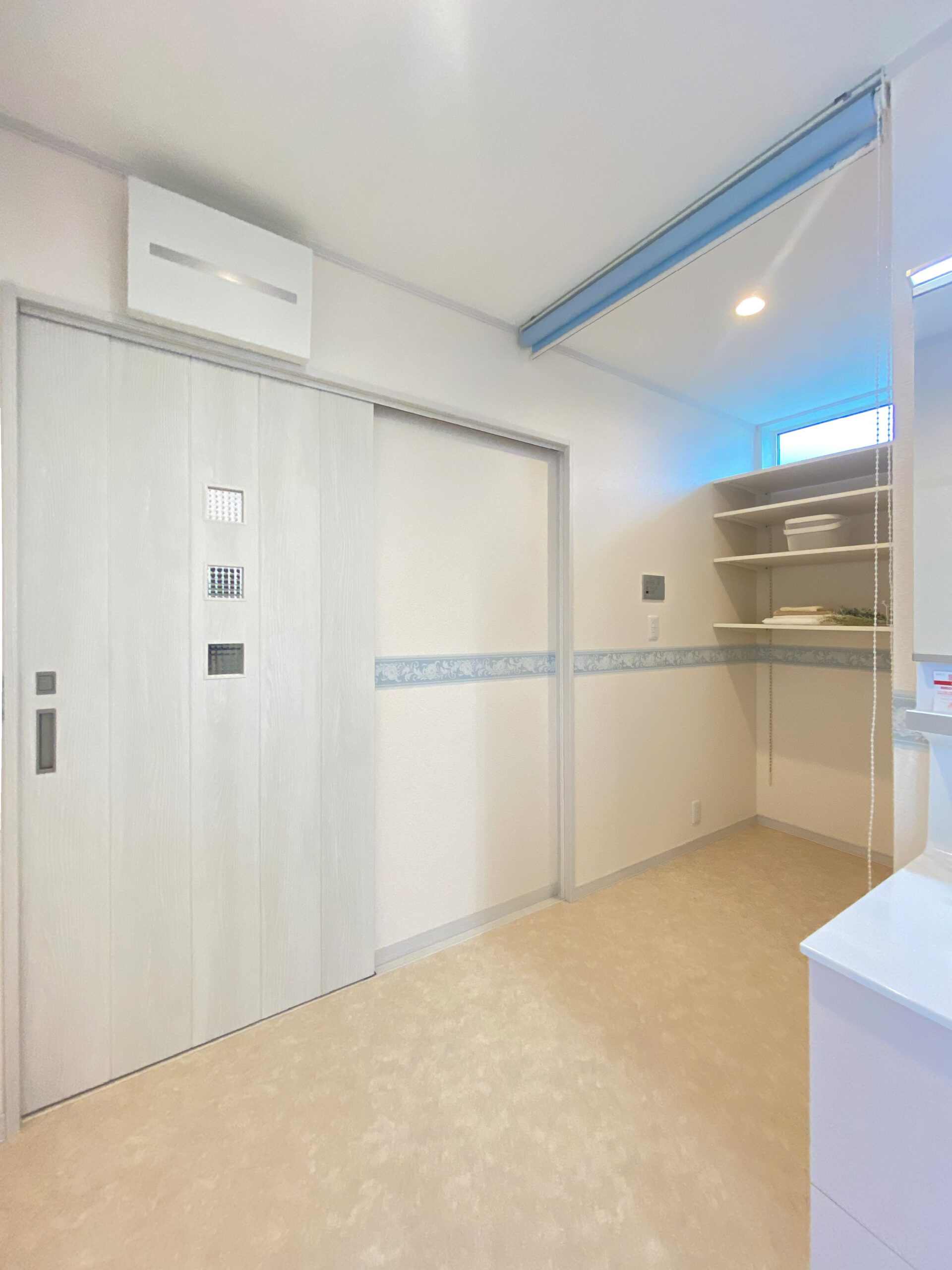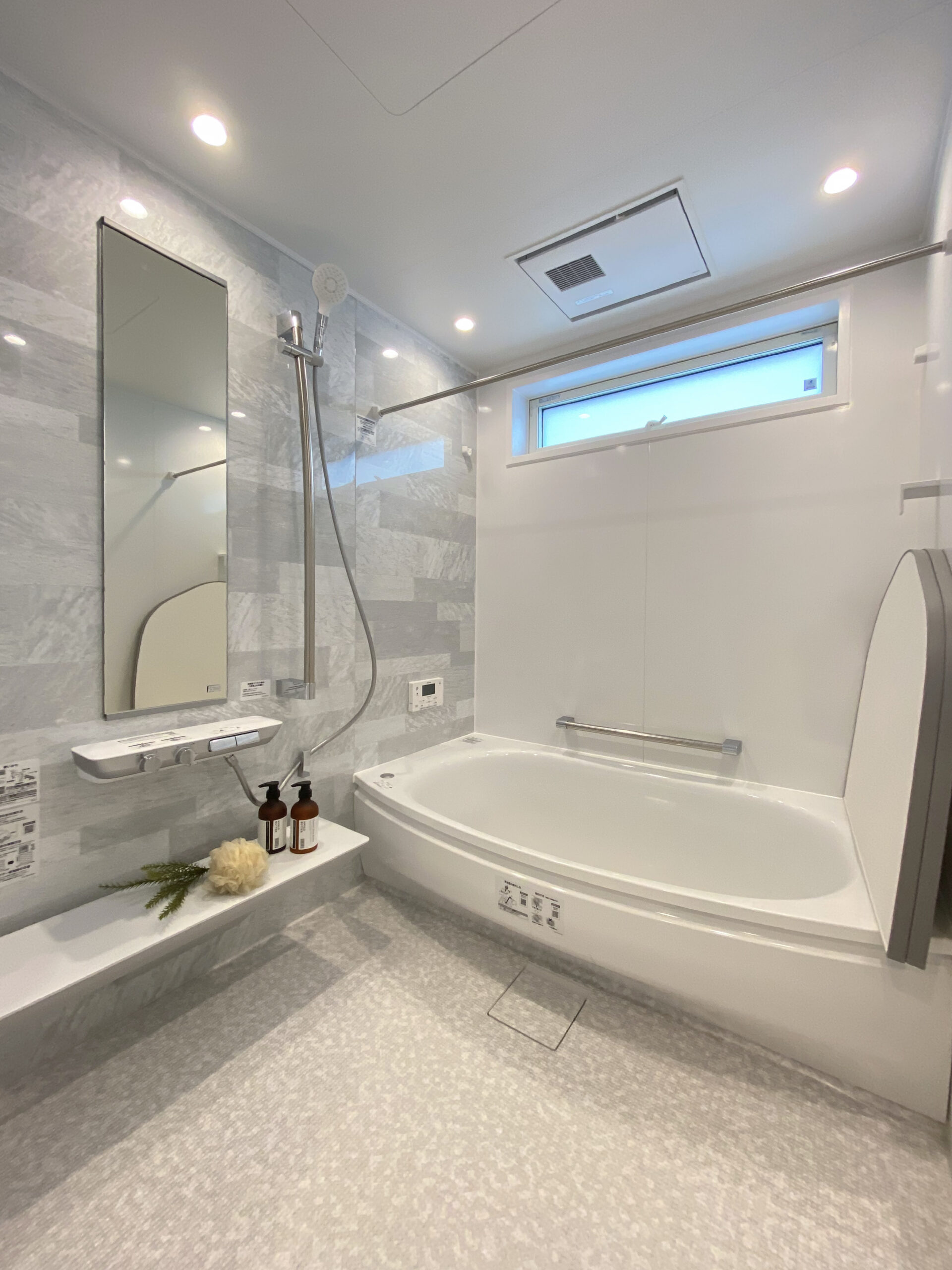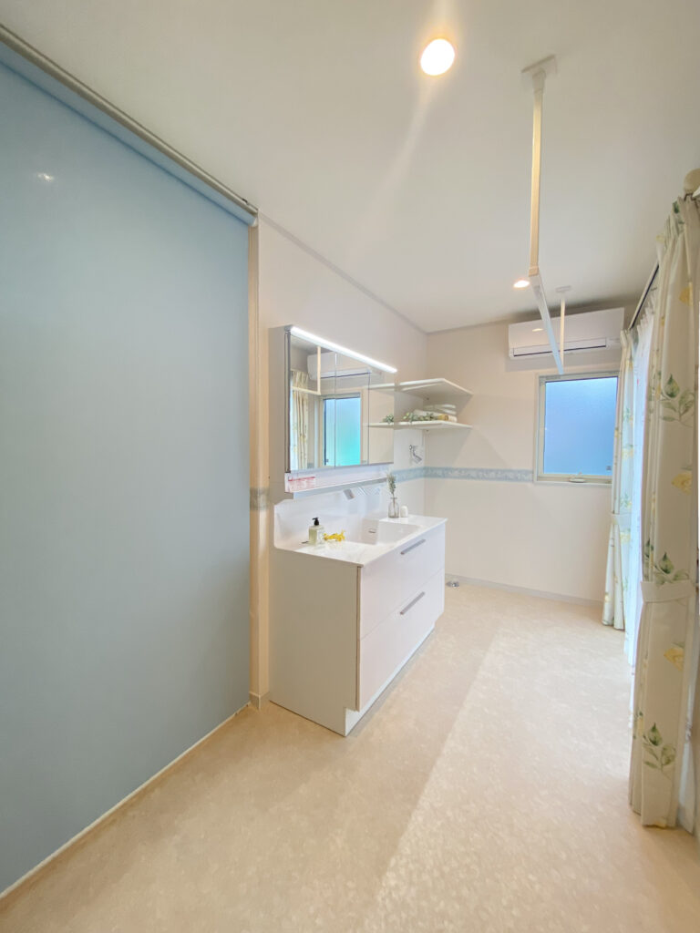 浴室にはTOTOの《サザナ》を採用し、人気の床ワイパー洗浄でお手入れの負担も軽減。脱衣室は、洗面ランドリーとロールスクリーンで仕切ることができ、通常は5.5帖の空間として広々使用可能です。