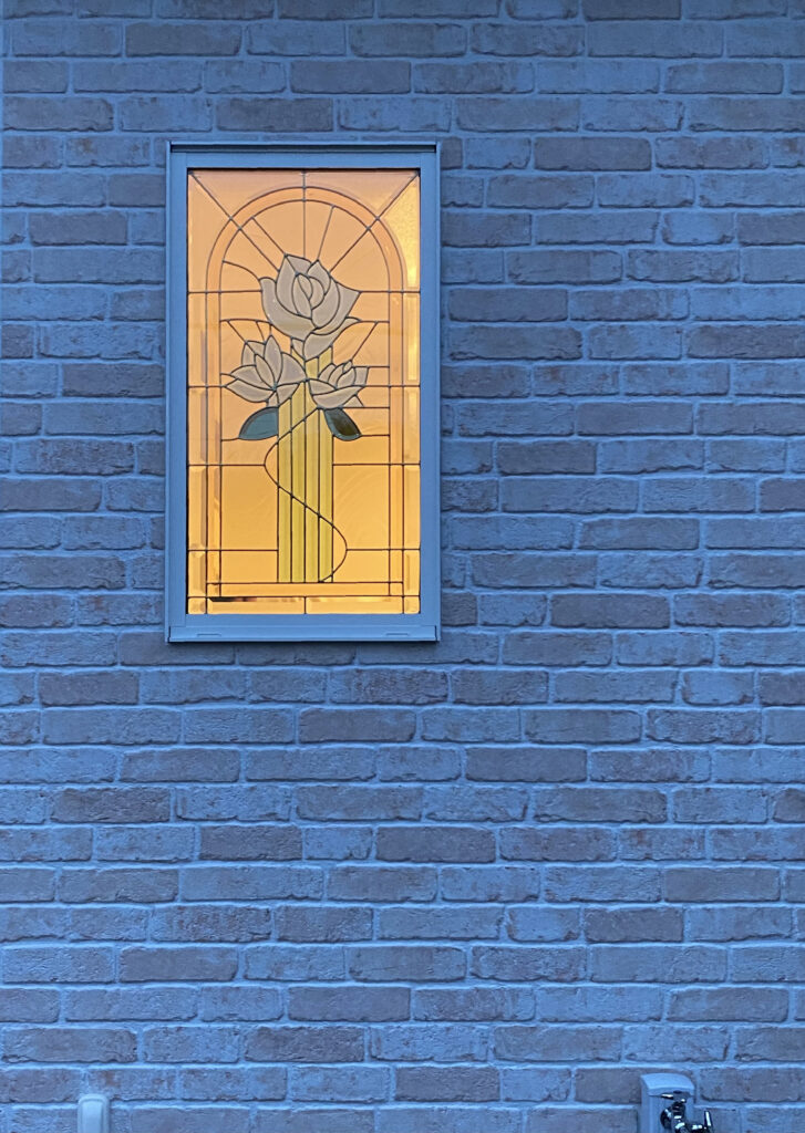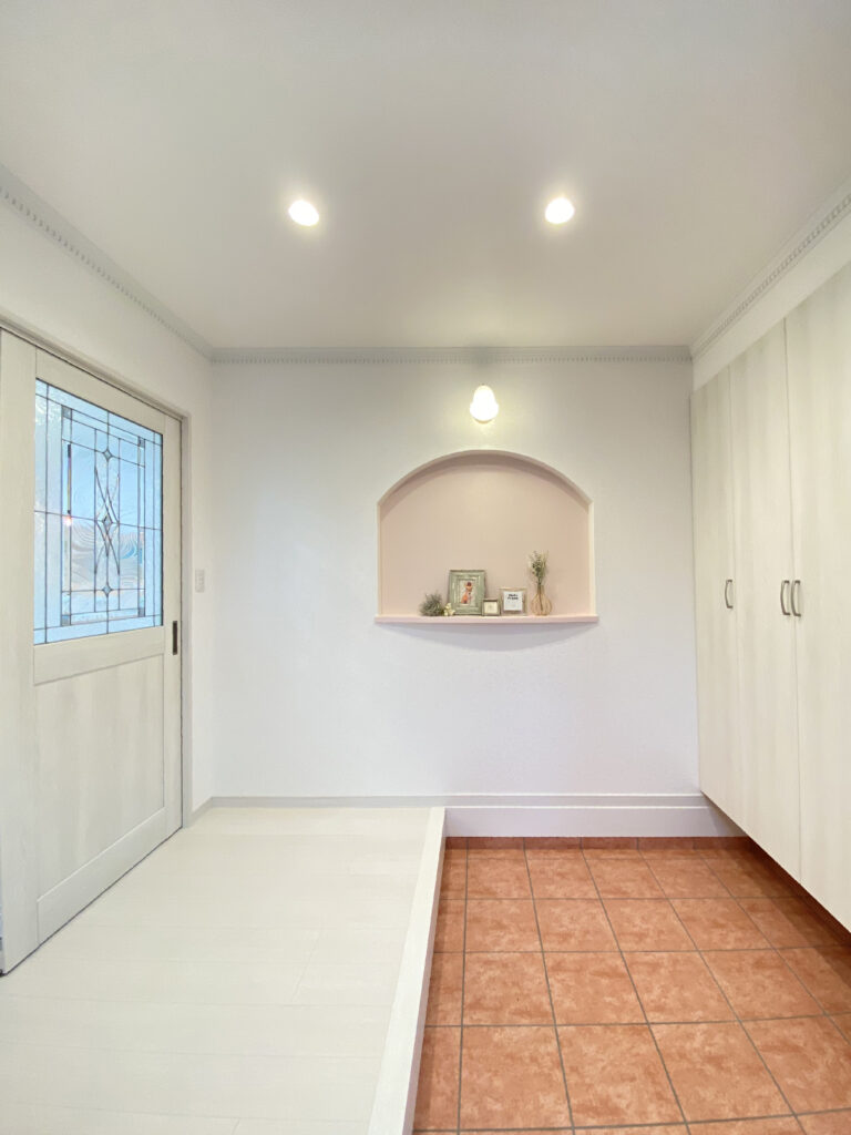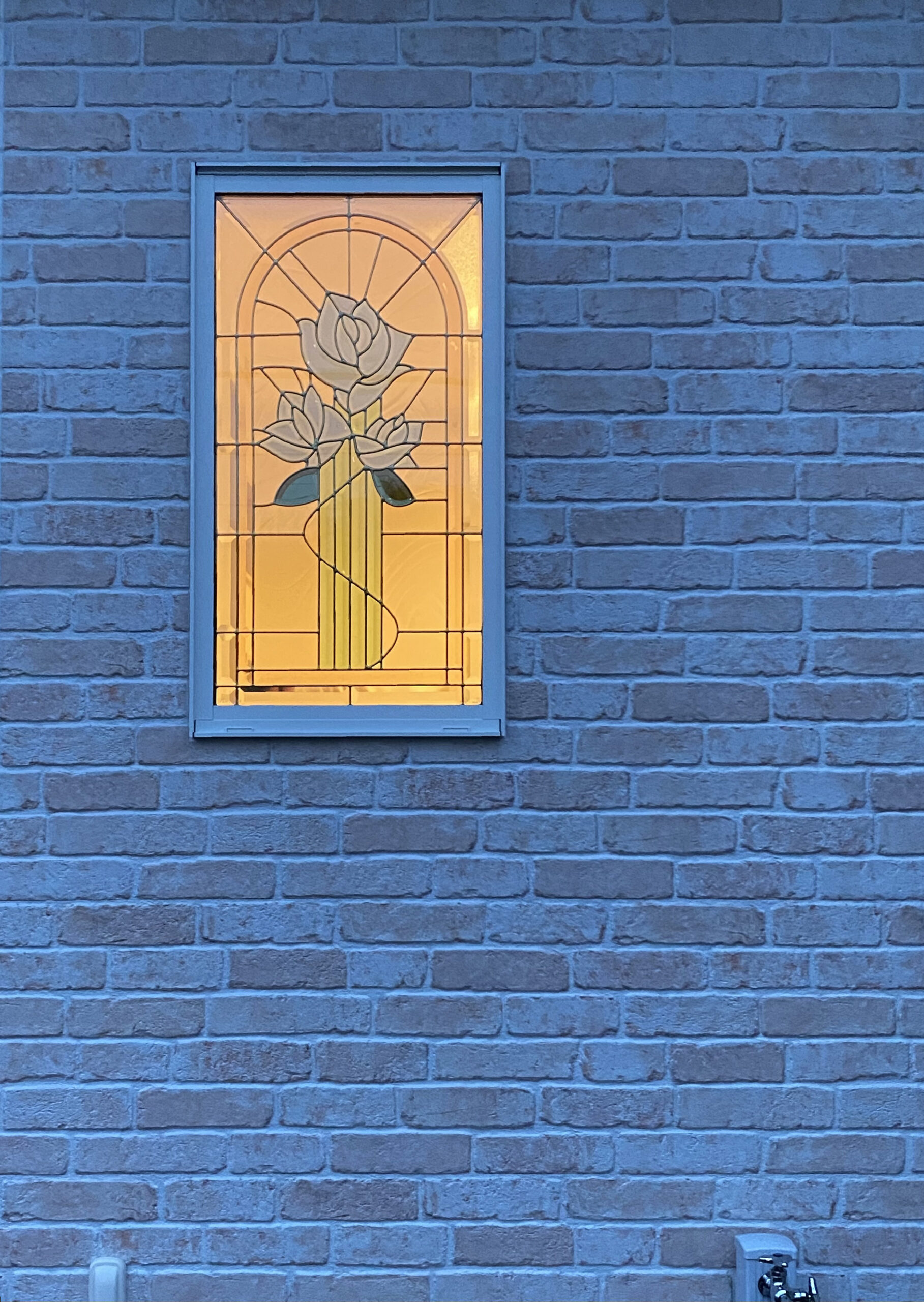 ステンドグラスが住まいに温かみを添え、造作家具が空間の質を高め、さらに水まわりには「ちょっと良い」上質な設備を採用することで、暮らしがより豊かになる平屋となりました。
