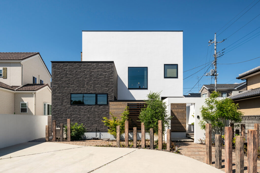 白をベースにブラックや木目を組み合わせた、シンプルでスタイリッシュな外観が印象的な大泉モデルハウス。