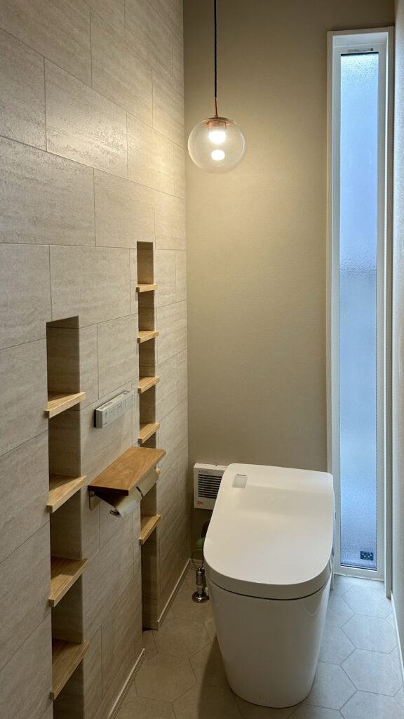 トイレは住まいの中で最も小さな空間ですが毎日必ず使う場所。だからこそ、快適さとデザイン性にこだわってみませんか。既製品をそのまま取り付けるだけではなく、空間全体を考えた「トイレ造作」を取り入れることで、暮らしの質はぐっと高まります。たとえば収納を壁面にすっきり収めれば、限られたスペースを有効活用でき、掃除もしやすくなります。また造作なら素材や色合いを自由に選べるので、お好みの手洗器にカウンターや間接照明を組み合わせて、まるでカフェのような落ち着いた雰囲気を演出することも可能です。トイレは来客が必ず使う場所でもあり、センスが光る空間はおもてなしの一部にもなります。機能性とデザイン性を両立させた造作トイレで、毎日の暮らしをより快適に。小さな空間だからこそ、こだわりが際立ちます。