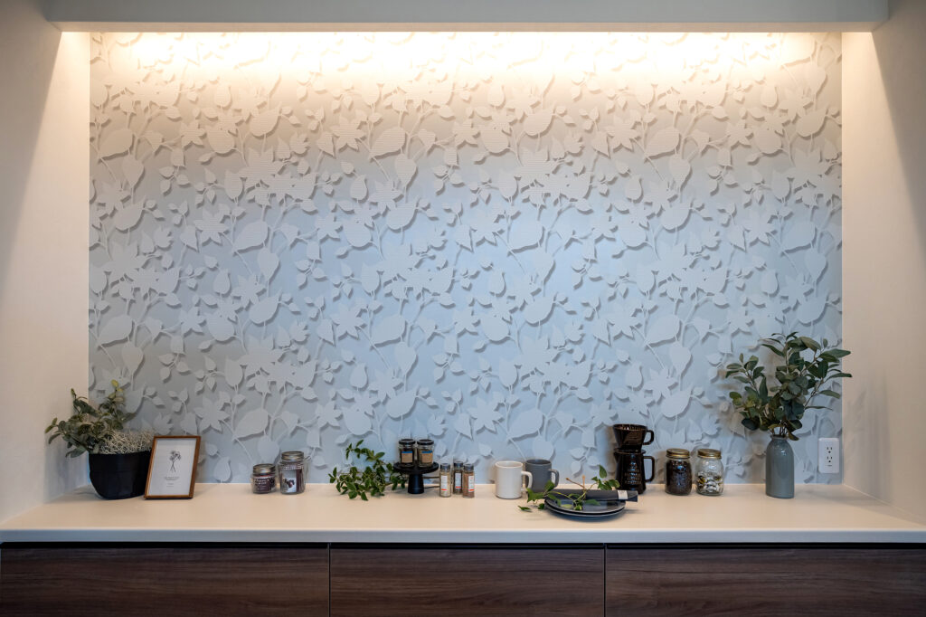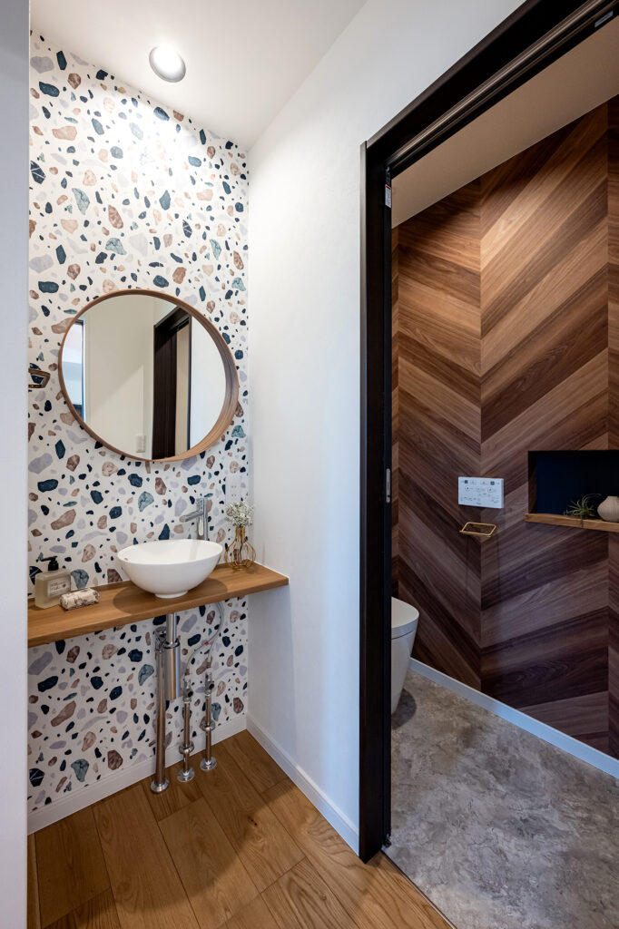 ご家族が感じた 「選べる壁紙の種類が豊富」それを裏付けるのが手洗い台と隣接のトイレだ。