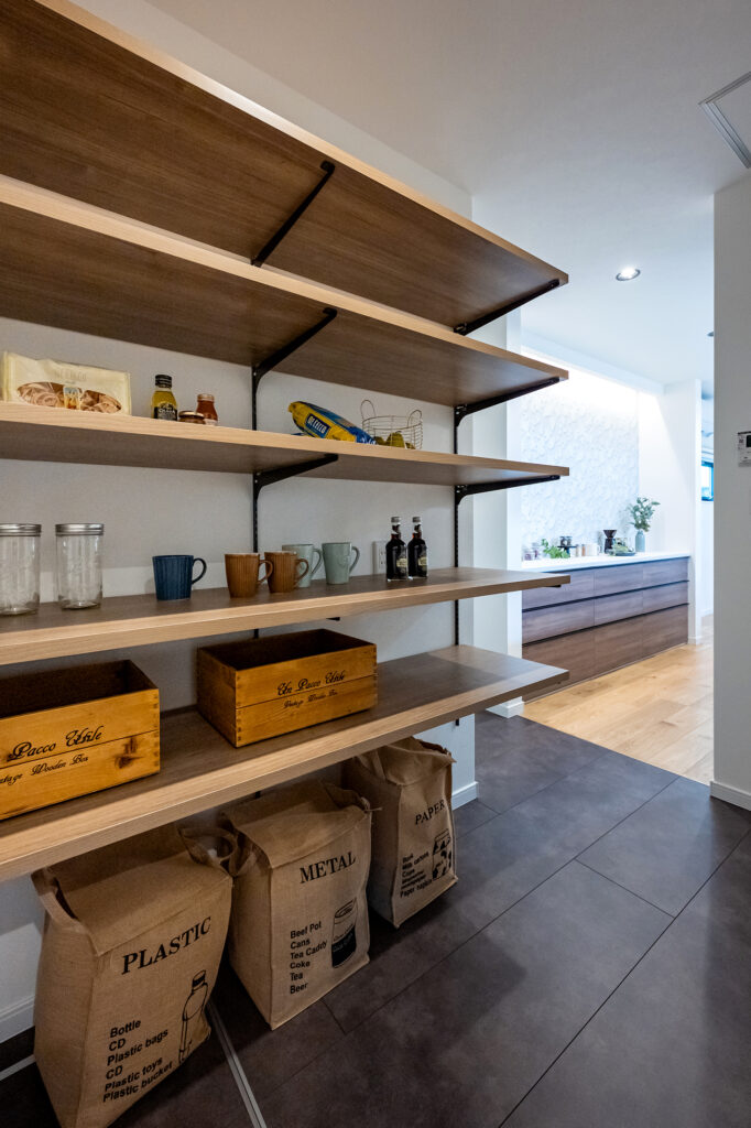 荷物を土足のまま運べて、 かつ雑然としがちなパントリーがキッチンや玄関から見えない間取り。